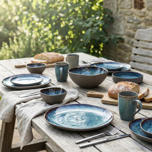 Blue Kiln-Glazed 11-Piece Dinnerware Set
