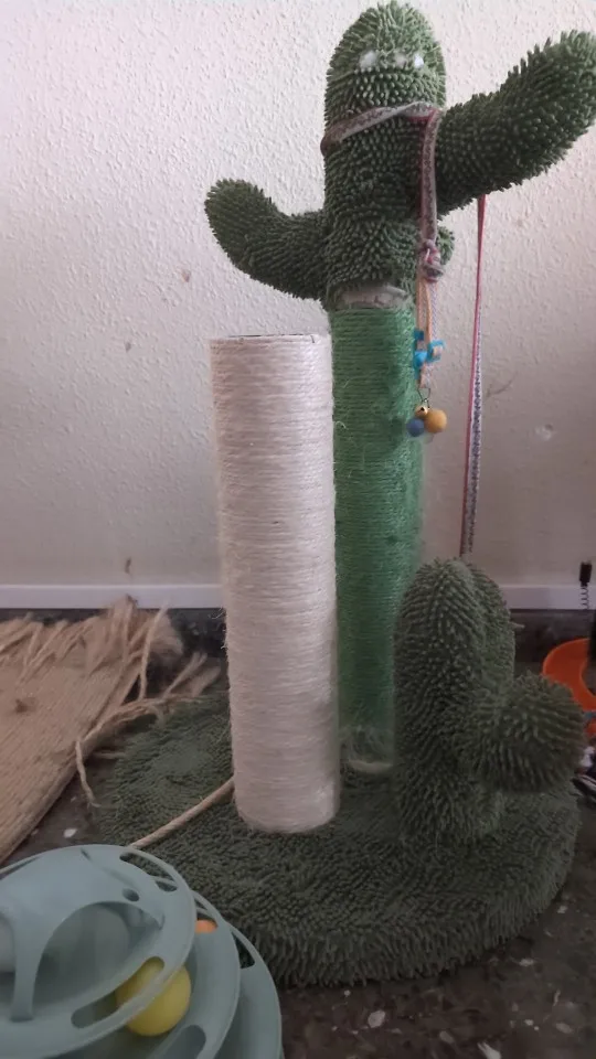 Cactus cat scratcher with natural sisal poles to protect your furniture.