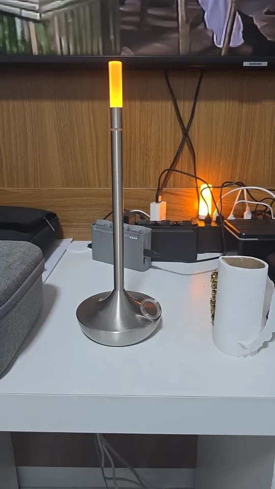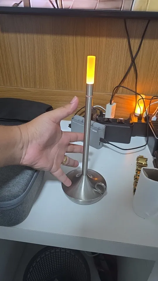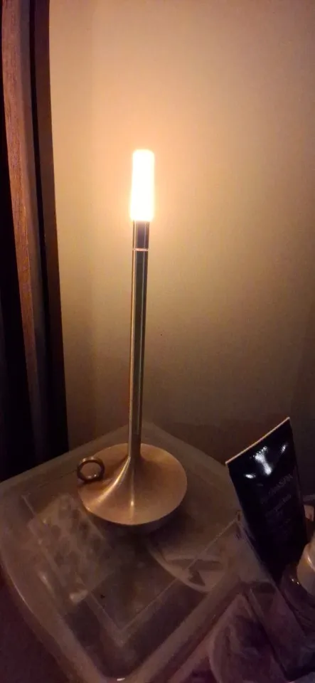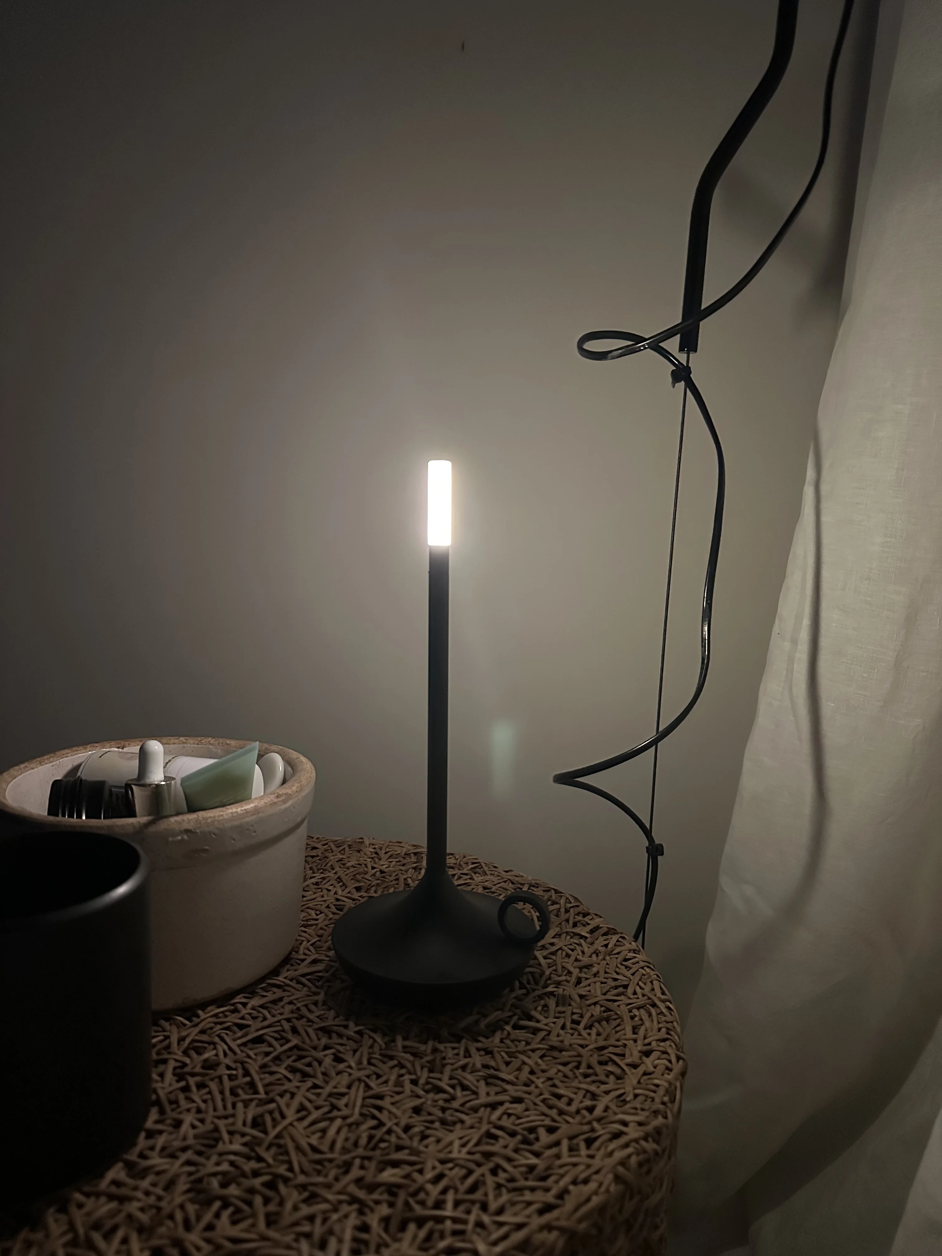 A sleek, dimmable-touch lamp for cozy indoor or outdoor ambiance.