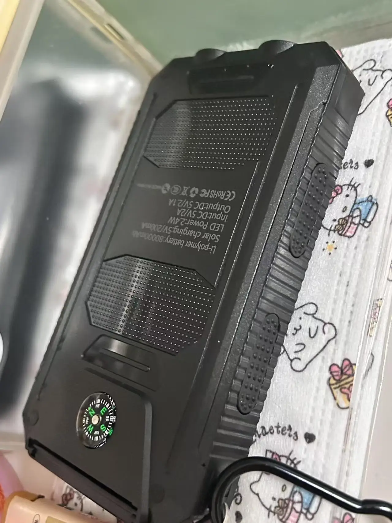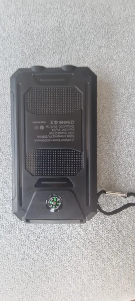 Stay powered anywhere with this Solar Power Bank featuring dual USB charging, an LED flashlight, and compass—perfect for outdoor adventures.