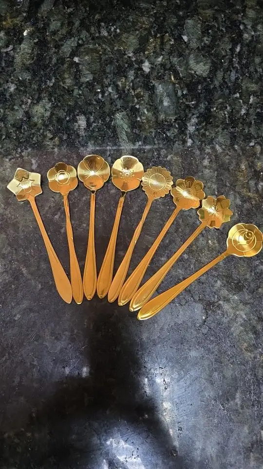 • Set of 8 flower-shaped spoons in gold, silver, and rose gold finishes